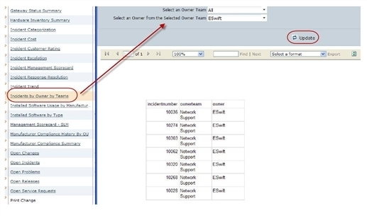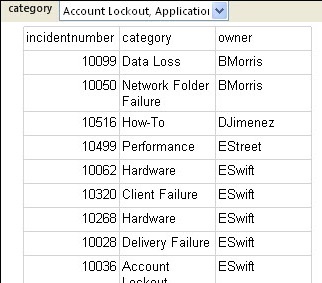 Example: Creating a Report Where Users Select Incident Categories and View Owners by Category