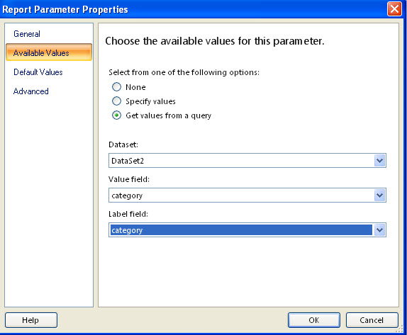 8.Enter a value in the Parameter Value field, (for example, enter category) and click OK.