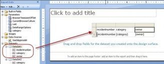 6.Enter your query. For example, a simple query to get all the incidents by owner team, showing the incident number and owner is select incidentnumber,ownerteam,owner from incident where owner= (@owner). In this example, @owner is taken by Microsoft SSRS as a parameter. When running the query, the system prompts you for the value. You can provide any value to test the query. The system automatically creates the owner parameter and automatically maps it to the dataset.