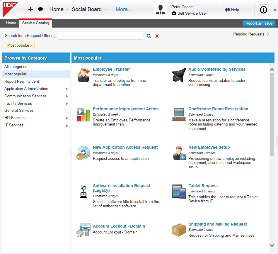 The Service Catalog, Most Popular Category