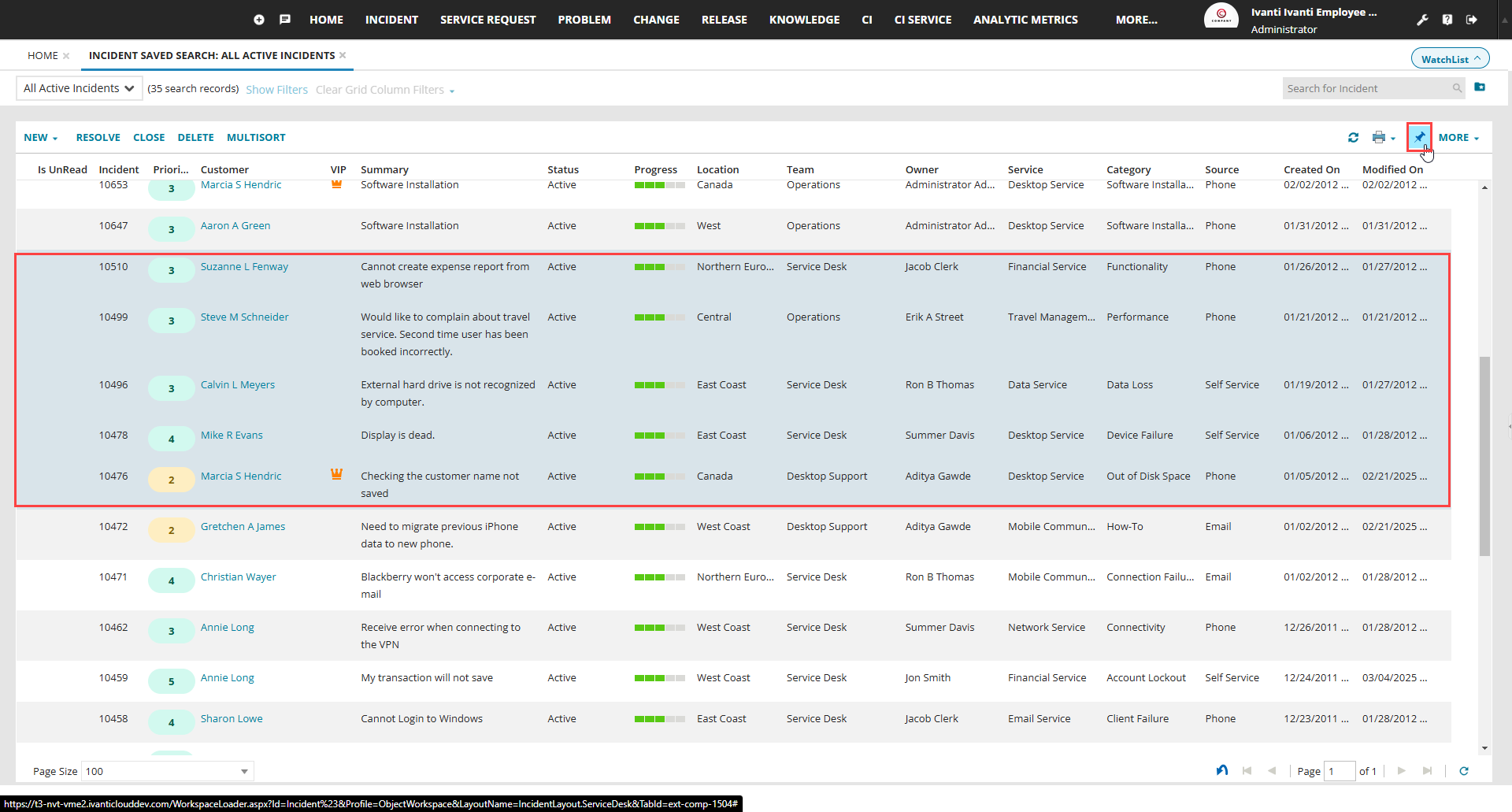 2.From any workspace such as Incident, Service Request, or any other workspace, select a business object record you wish to pin.