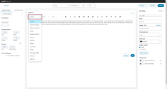 Settings panel: Select and configure the various settings that apply to your page elements.