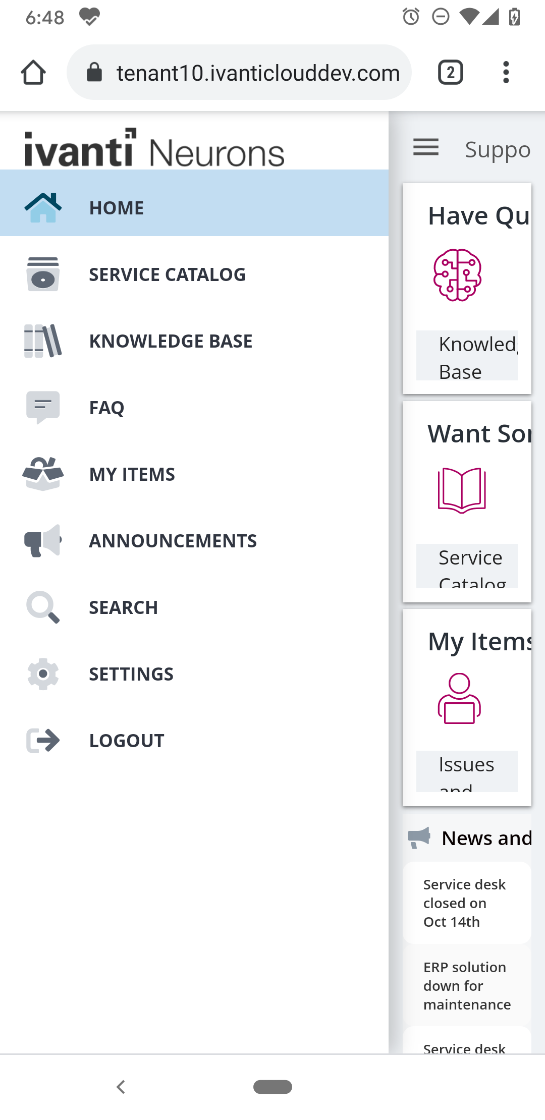 • When you use Ivanti Neurons for ITSM on mobile devices including tablets, only mobile-based user roles are available. If you want to login to non-mobile based user roles, use your desktop or a laptop.