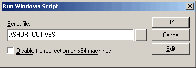 Calls the shortcut.vbs Visual Basic script from the package directory.