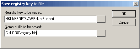 Saves the HKLM\SOFTWARE\NetSupport key to the C:\LOGS\registry.bin. file.