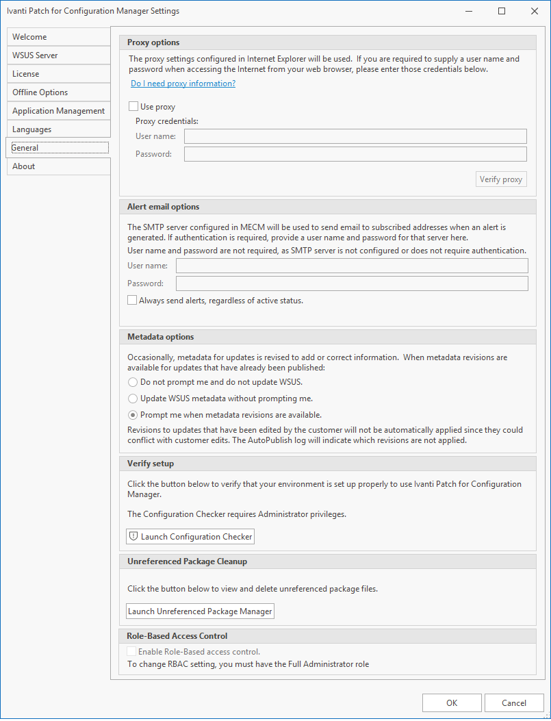 The General tab is used to specify your proxy and metadata options and to launch the Configuration Checker utility.