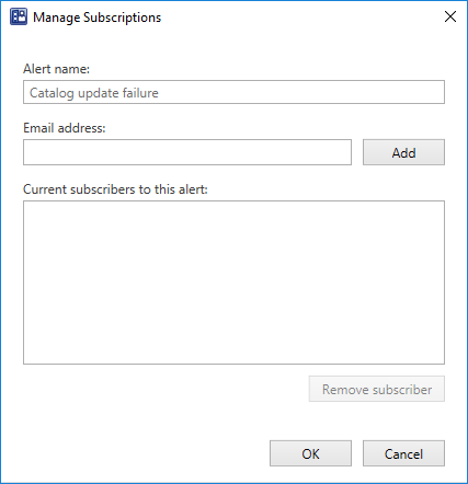 Use the Manage Subscriptions dialog to specify which email addresses you want to subscribe to this alert.