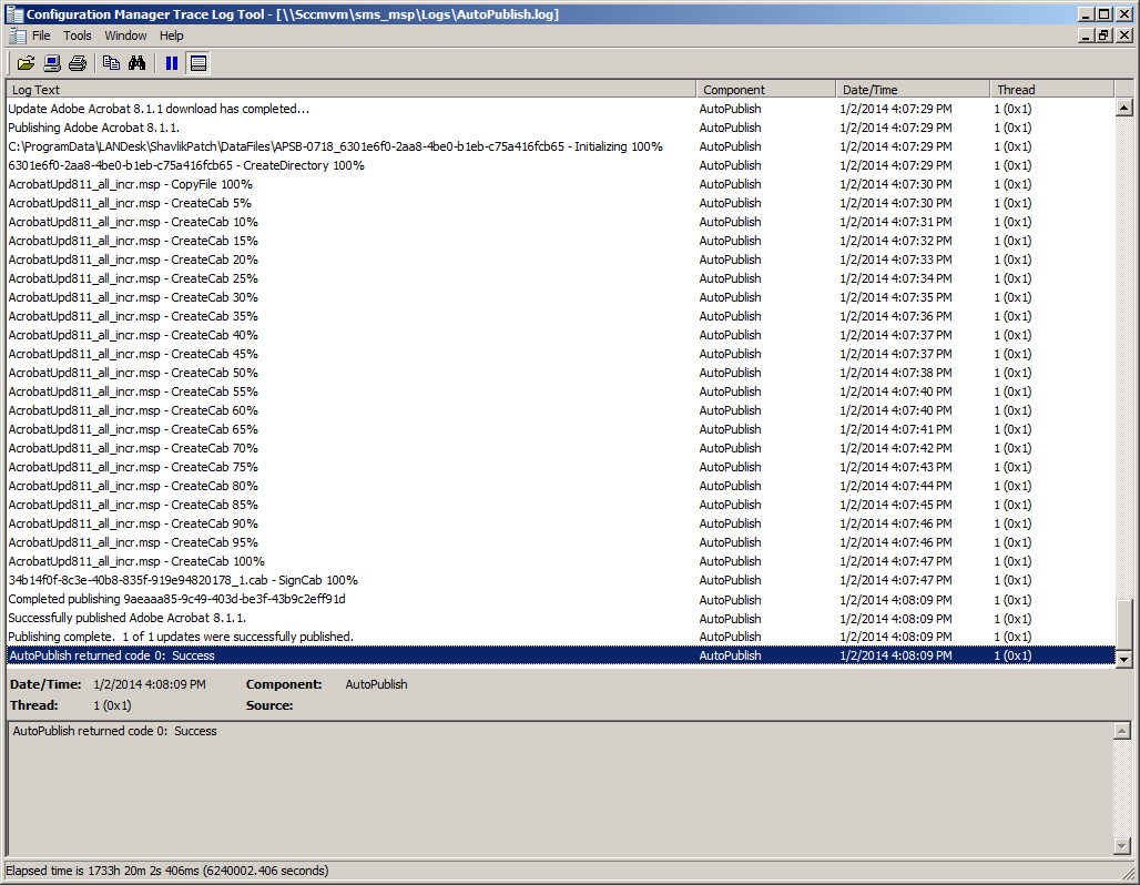 - (Optional) Use the Configuration Manager Trace Log Tool to open the AutoPublish.log file and monitor the publication process.