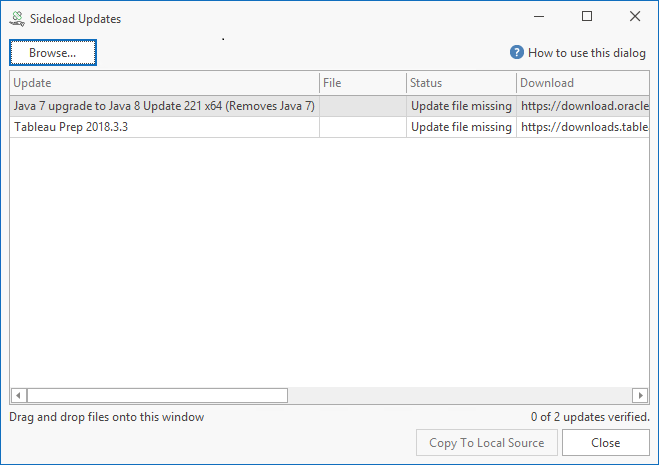 - Input the associated update files into the dialog.