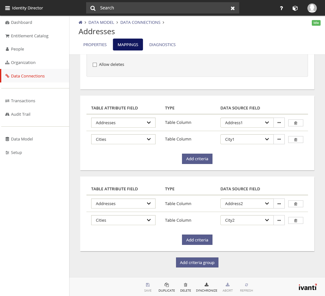 | Allow deletes | Select this option to allow the synchronization of the data connection to delete data that is currently in the table attribute, if that data is no longer in the Data Source. | ||||||||||||||||