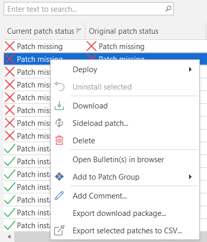 You can easily search for patches contained in the middle pane. All searches are performed using the Search tool. To initiate a search you type the alphanumeric characters that you want to find and then press Enter or click the search icon (