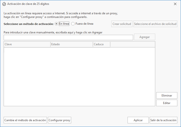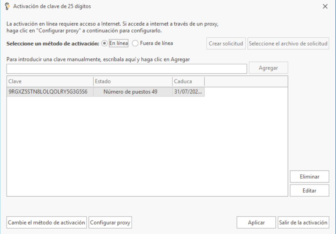 • Método de activación de claves de licencia Este es el método de activación principal.