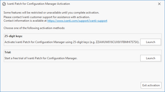 Hasta que no se active Patch for Configuration Manager, las acciones que podrá llevar a cabo estarán muy limitadas. Hay tres métodos de activación:Hay dos métodos de activación: