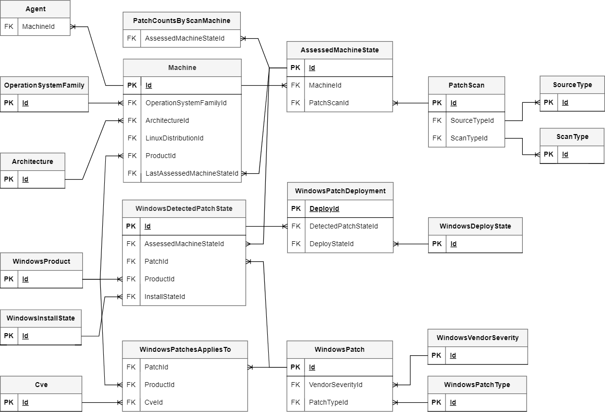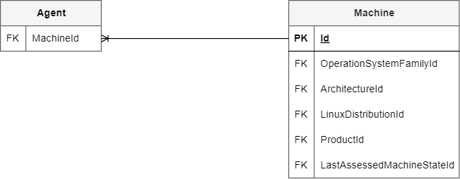 此页面显示 Reporting3 视图中的实体关系,其中包含有关 Windows 和无内容 Linux 数据的信息。