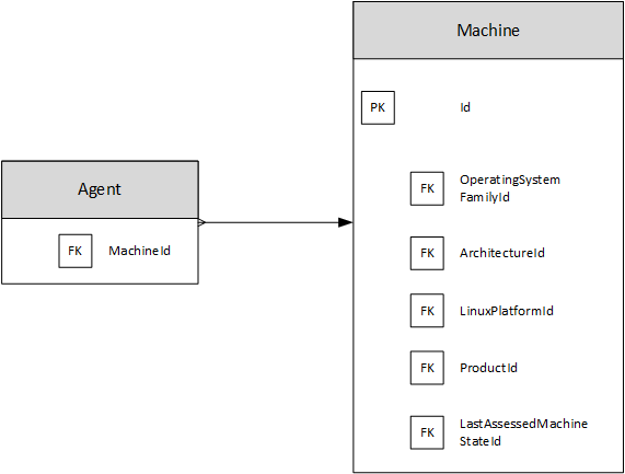 此页面显示 Reporting2 视图中的实体关系,其中包含有关 Windows 和基于内容的 Linux 数据的信息。