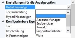 - Setzen Sie im Bereich Eigenschaften die Option Hyperlink anzeigen auf True (Wahr) und wählen Sie in der Liste Unterklassentyp die gewünschte Unterklasse für das Objekt aus.