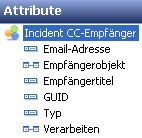 Ein neues Geschäftsobjekt mit dem Suffix „CC-Empfänger“ wird erstellt, zum Beispiel Incident CC-Empfänger, und eine Reihe von Attributen wurden automatisch hinzugefügt.