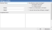 Das Dialogfeld „Abfrage erstellen“ wird geöffnet. - Geben Sie den Shortcut-Titel ein, der in der Shortcut-Leiste angezeigt werden soll.