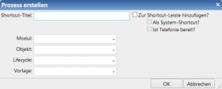 Markieren Sie das Kontrollkästchen Zur Shortcut-Leiste hinzufügen? nicht, wenn Sie eine neue Instanz eines Prozesses protokollieren möchten, ohne einen Shortcut für den Prozess zur Shortcut-Leiste hinzuzufügen.
