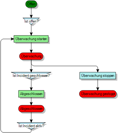 Durch Auswahl der Aktion Incident überwachen im Prozess „Vollständiger Incident“ (siehe Incident-Management: Vollständiger Incident) wird ein Task vom Typ „Incident-Überwachungsliste“ erstellt, der dann von der Abfrage Von mir überwachte Incidents (siehe Von mir überwachte Incidents) dazu verwendet wird, den Benutzern das Auffinden von Incidents zu erleichtern, die für sie von Interesse sind.