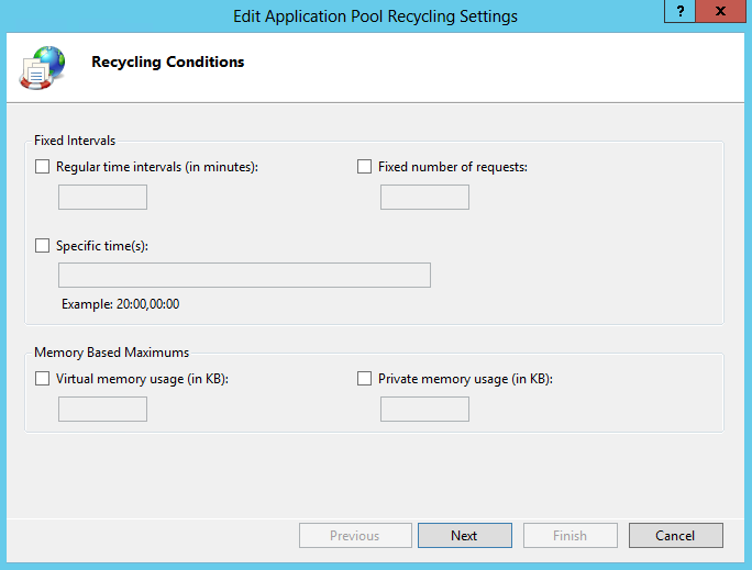 You can switch off the options to re-cycle application pools in IIS, or set these to recycle out of hours or during a period of reduced activity. Re-cycling an application pool is effectively the same as restarting the application, which then disconnects everyone and so reduces performance while the cache is refreshed. However, this can clear memory that has been taken up by the worker process.