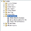 On the Queries and Reports tree, you can choose to display the queries and reports alphabetically, or display by Module and Business Object.