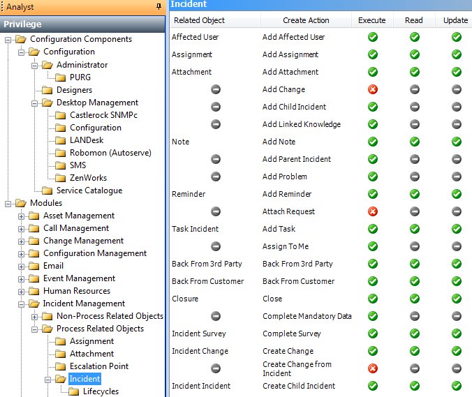 You can set access at four levels: the module level (for example, Request Management), the business object level (for example, Assignment) and the action level (for example, Complete) and attribute level (for example, Salary).