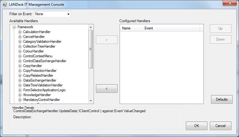 The Runtime Handlers tree lists all of the runtime handlers that you are using. The items that appear here may be different to those shown as you may not use all or any of the runtime handlers.![]()
