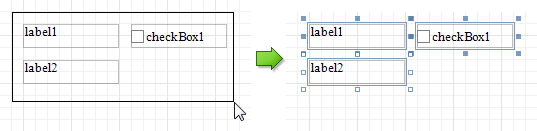 Click on a blank space and drag the mouse to create a selection frame. When the mouse button is released, all controls within the selection frame's boundaries will be selected. In this case, the previous selection is cleared.