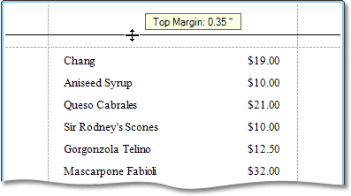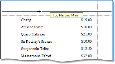 These settings affect the layout of the report's design surface. After their modification, you may notice red warning marks, indicating that the controls go beyond the page width. These warnings can be switched off by setting the Show Printing Warnings property of the report to No.