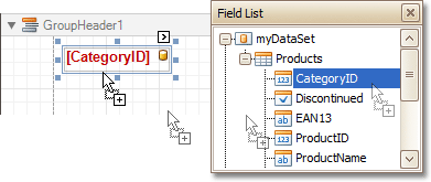 Now, it's only left to drop the corresponding item from the Field List onto this band, so that it's displayed as a header for each group.