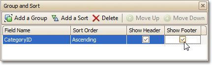 In addition, you can enable the corresponding Group Footer band, by checking the Show Footer option in the Group and Sort Panel.