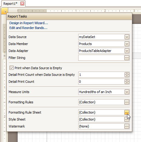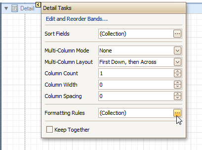 Finally, select the band or control to which the formatting rule must be applied (in this example it is the Detail band, and via its Smart Tag, access its collection of Formatting Rules.