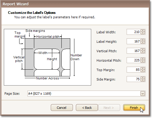 When you need to print out stickers or, say, water-proof labels, you need to purchase the appropriate paper. Every supplier will provide its own specific label size or label position within a paper sheet. To make it easier for you to produce labels, this wizard step lists several label paper suppliers and their products. Once you've selected a supplier and a product (paper and label type), the report will change its settings so that your labels will be printed exactly where they're supposed to, without you having to adjust the label position and size manually.
