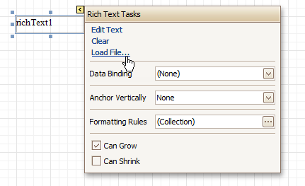 Content from an external TXT or RTF file can be loaded to this control via its Smart Tag.