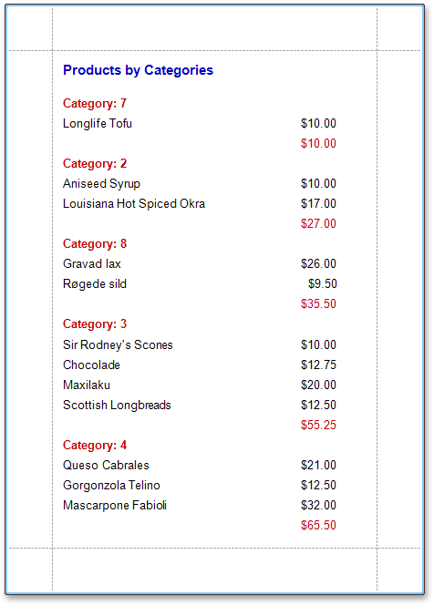 This tutorial demonstrates how to sort groups based on the result of a function summary specified for them. To demonstrate this feature, we’ll use a report similar to the one created in the following tutorial: Change or Apply Data Grouping to a Report.