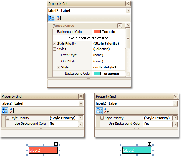 When both styles and individual appearance settings are assigned to an element, you can control the priority of their differing options, via an element's Style Priority property.