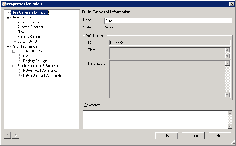 3.At the Rule general information page, enter a unique name for the rule. The rule's status can't be modified here. To change the status of a detection rule, right-click the rule in any list view, and then click Enable or Disable, depending on the current state. The rule's definition information can't be modified here either. However, you can enter any information you want in the Comments box.