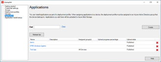 You can install applications as part of a deployment profile. When assigning applications to a device, the deployment profile must be assigned to an Azure Active Directory group the device belongs to. Applications you add are uploaded to Azure Blob Storage.