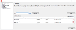 The Groups page shows available groups in Azure and you can add or remove groups from this page.