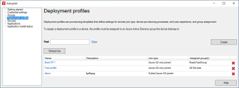 Create a deployment profile that defines settings for domain join type, how the device will be provisioned, the end-user experience, and AD group assignment.