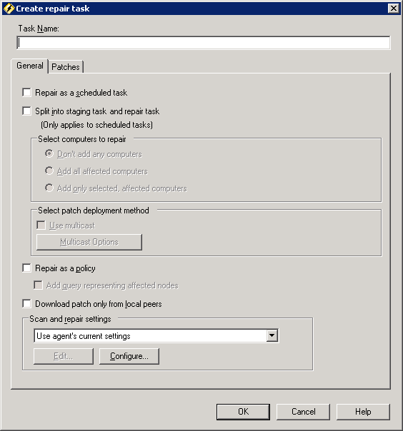 5.To view or download the patches associated with the task, click Patch list. To change a patch so that it uses multicast, select the patch and click the Multicast button. Remove multicast by selecting the patch and clicking Don't multicast.