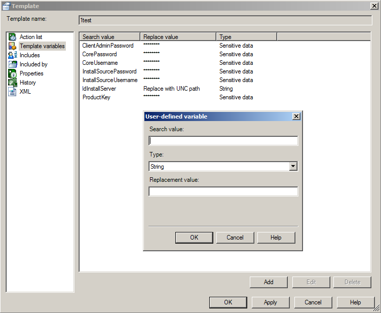 In the Search value box, type the item you want to add as a variable. Use quotation marks around names with spaces. Names are case-sensitive.