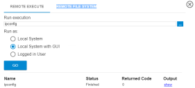 You can remotely execute programs on the target. If you execute a command that runs in a command prompt or PowerShell, the RCViewer application will capture the output from that command so you can view it later. If you execute a command that launches a Windows application, that application will launch and no output will be captured.