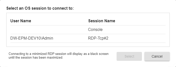 If there are multiple RDP sessions available on a device, Endpoint manager remote control will prompt you to choose the session you want to connect to when it starts.