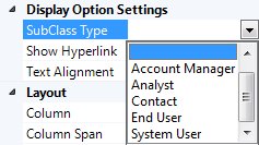 4. In the Properties grid, set Show Hyperlink to True, and in the SubClass Type list, select the required sub-class for the object.