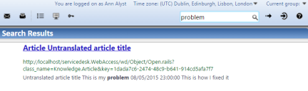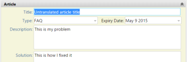 When you have added your translations and rebuilt the knowledge indexes, users can search for and read knowledge articles in their own language. Text that has been translated appears in their language of choice, and text that has not been translated appears in the default language for your system.
