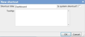 - Type the Shortcut title that you want to appear in the shortcut bar, and the Tooltip that you want to appear when you hold the mouse button over the shortcut, then click OK.