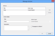 Actions enable you to progress a process or add further information to a process. For example, you can add notes to a process to specify further information by clicking the Add Note action. The Actions that you specify appear in the Actions list in the workspace when a user gets to that specific stage in the process.