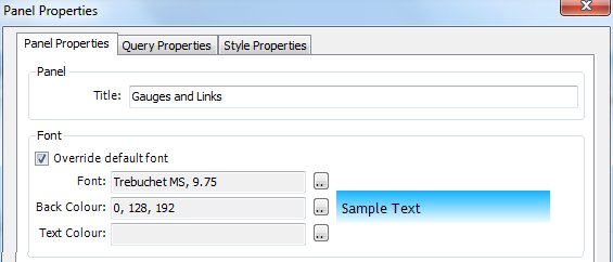 You can change the Title of the panel if required. In addition, you can override the default system font, and change the color of the panel and text. - To change the Font, select the Override default font check box, then select the required font and text and background colors and click OK.